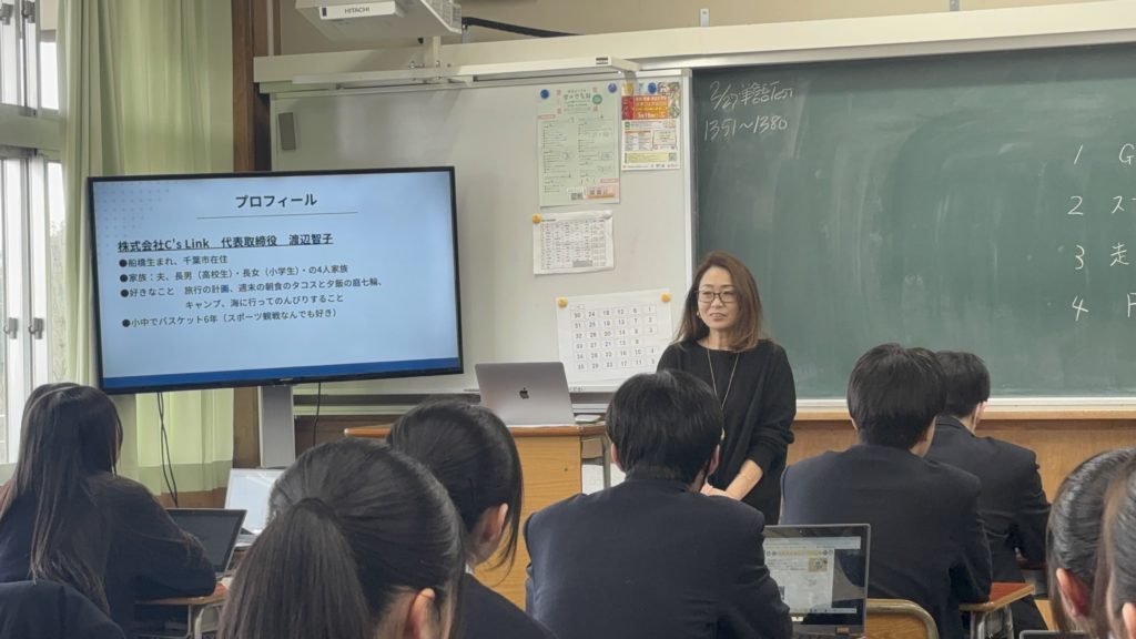 授業数が1時間分多かった5組では、株式会社C's Linkの渡辺智子社長をお招きしてお話を伺いました。